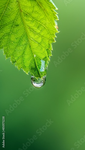 © hakule, Fototapeta premium A leaf with a drop of water on it