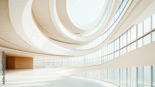 Obraz premium A legislative hall with soft pastel tones and curved architecture. Featuring...
