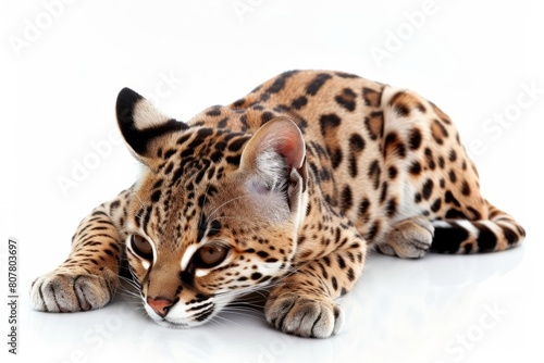 Fototapeta premium a leopard cat , a felidae animal isolated on white background