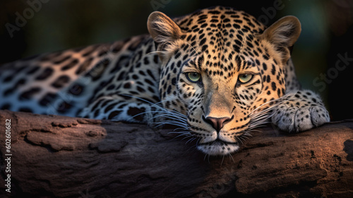 © DLC Studio, Fototapeta premium A leopard in the wild is looking at the camera