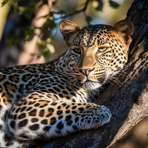 Fototapeta premium A Leopard (Panthera pardus) lounging in a tree