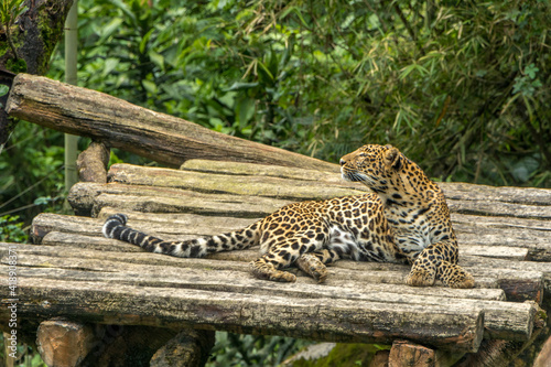 © Autresa KN, Obraz premium A leopard relaxing in a tree.