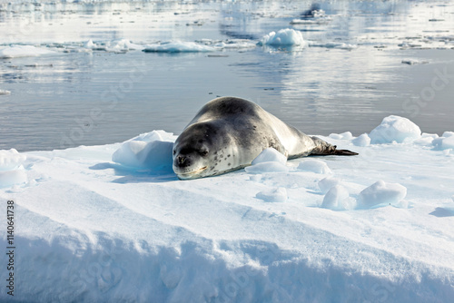 Obraz premium A Leopard Seal on Antarctic Ice