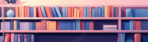 © Woranittha, Fototapeta premium A library shelf with books about mental health, race, and gender equality, fostering awareness
