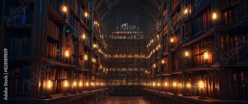 © Siripong, Obraz premium A library with books arranged in neat rows on shelves. The soft, ethereal light creates a surreal atmosphere. and lively and wonderful