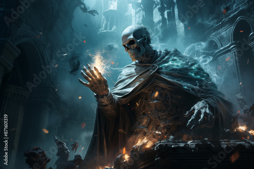 Fototapeta premium A Lich Casting A Spell In An Ancient And Ruined Temple