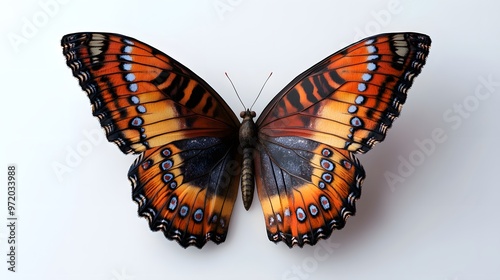 © Mr image, Fototapeta premium 67. A lifelike 3D render of a detailed butterfly with intricate wing textures, isolated on a pristine white background