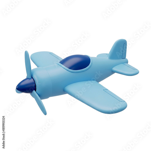 Fototapeta premium A light blue cartoon airplane with a dark blue propeller and cockpit on a...