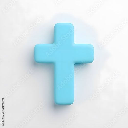 © All 1n One 😎, Obraz premium A light blue Christian cross symbol on a white background