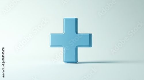 © B 7 YOU, Fototapeta premium A light blue 3D plus sign on a white background.