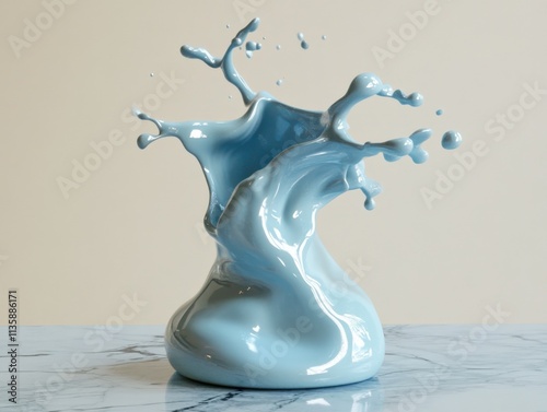 © Priya, Obraz premium a light blue liquid mid-splash on a marble surface