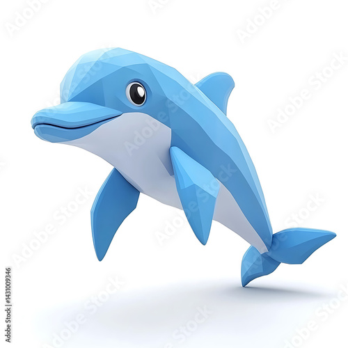 © watz, Obraz premium A light blue polygonal dolphin depicted as a stylized low-poly figure is positioned against a white background with a soft shadow.