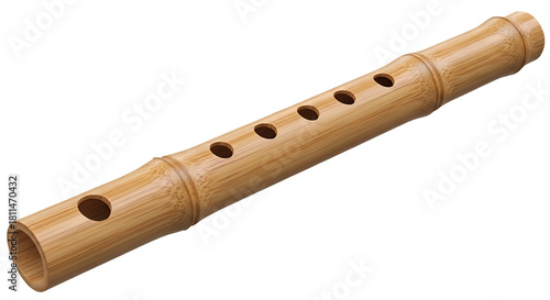 Fototapeta premium A light brown bamboo flute with finger holes displayed against a black background in a studio shot