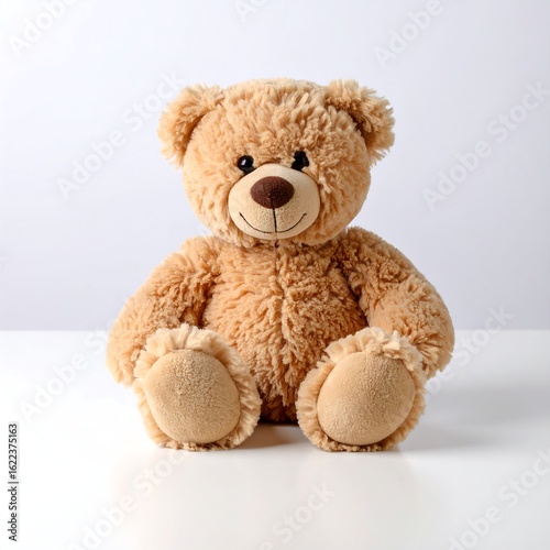 © Benti, Fototapeta premium A light brown teddy bear sits on a white surface against a white background