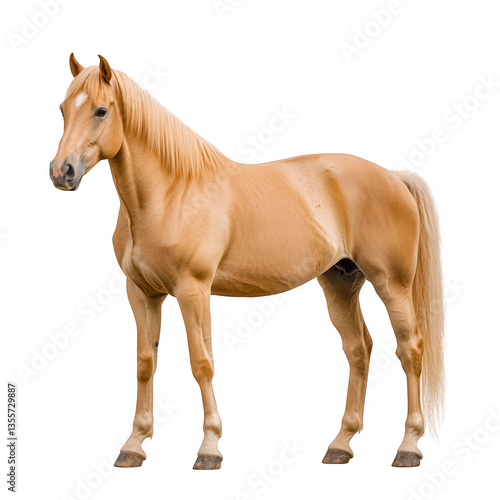 © kageyama, Fototapeta premium a light-colored horse stands gracefully on a white background showcasing its sleek body and flowing mane embodying beauty and strength
