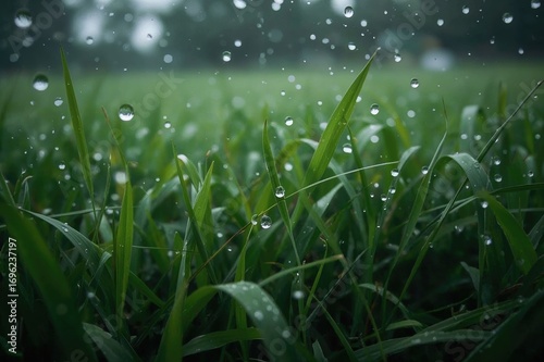 Naklejka premium A light drizzle brings out multiple tones of green in the grass