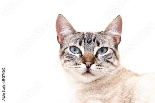 © mialcas, Obraz premium A light gray cat with blue eyes. Isolated in a white background.