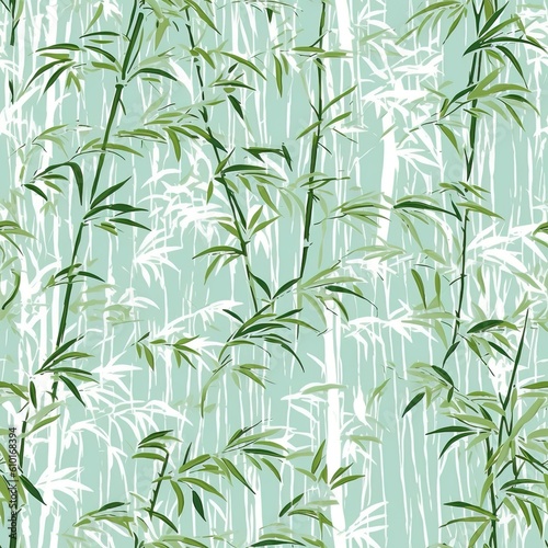 © Bargais, Obraz premium A light green and white bamboo pattern based in vintage prints. Generative AI.