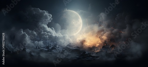 Obraz premium a light moon , coming out of the smoke, Generative AI