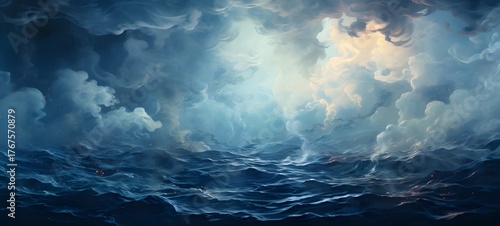 © Karepe, Fototapeta premium a light Ocean , coming out of the smoke,generative AI