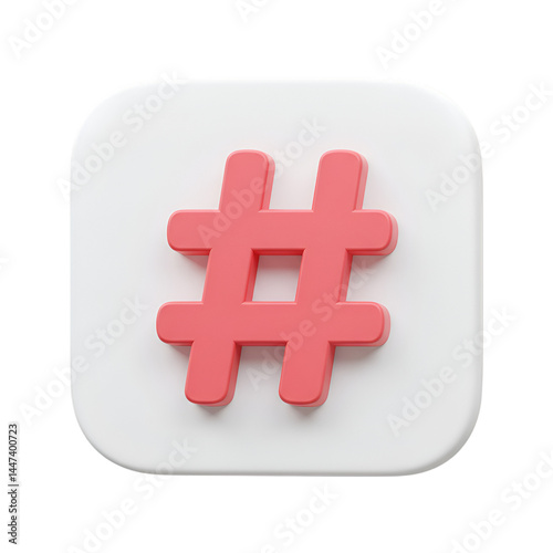 © Rahman, Obraz premium A light pink hashtag symbol on a white square button