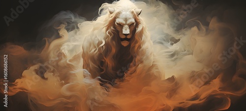 © landy, Obraz premium a light sphinx demon , coming out of the smoke, generative AI