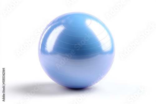 © PONPES ASSAIF, Obraz premium A lightblue exercise ball sits on a white surface with a soft shadow cast beneath The ball is glossy