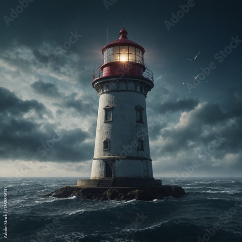 © Muhammad, Naklejka premium "A Lighthouse That Guides Ships Through the Skies Instead of the Ocean" – A surreal nautical inversion.