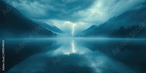 Fototapeta premium A Lightning Strike Reflected in a Still Mountain Lake