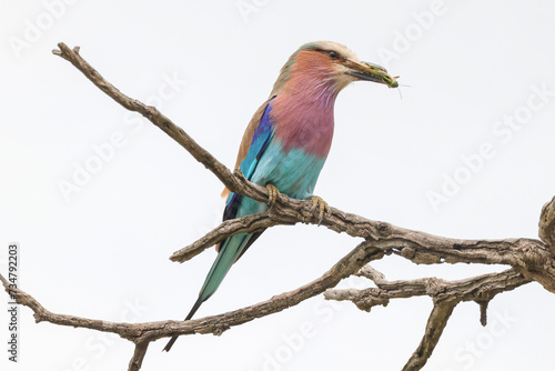 Fototapeta premium a lilac breasted roller with a grasshopper in its beak