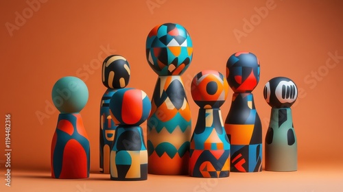 Obraz premium A limited-edition designer art toy with geometric shapes, abstract patterns, and a matte texture, displayed under soft lighting.