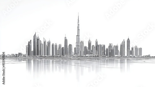 © Fexri, Obraz premium A line art vector illustration of the Dubai skyline, showcasing a panoramic cityscape.