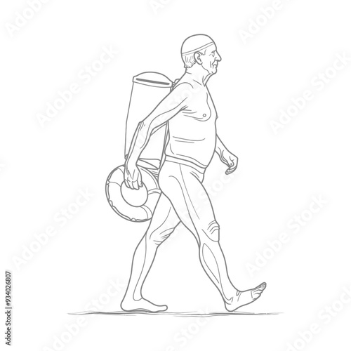 Fototapeta premium A Line Drawing of a Lifeguard Walking with a Life Preserver