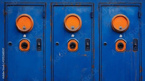 Fototapeta premium A line of blue lockers adorned with orange accents, forming a lively and...