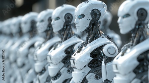 © hanafi 99d, Fototapeta premium A Line of White Robots