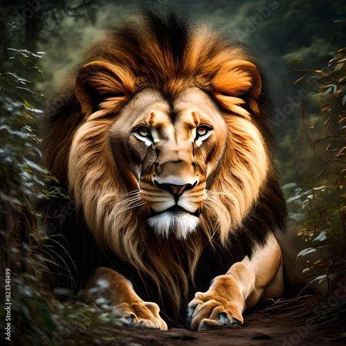 © shabahat, Naklejka premium a lion's roar as it stands proudly in the jungle
