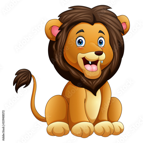 © dreamblack46, Fototapeta premium A lion sitting down on a white background