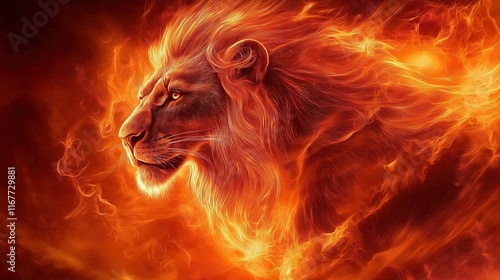 Fototapeta premium A lion with a fiery mane and a glowing face
