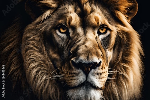 © Aimi, Fototapeta premium A lion with black background and colored