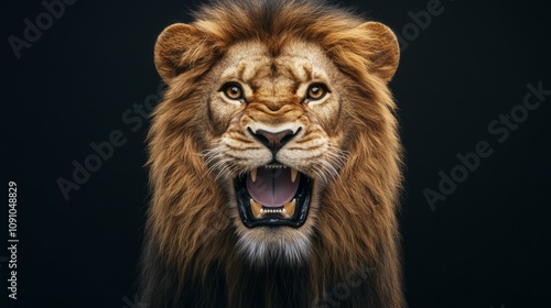 © liliyabatyrova, Fototapeta premium A lion with its mouth open and teeth bared