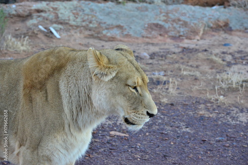 © paulbriden, Naklejka premium A lioness at a Game Park in South Africa