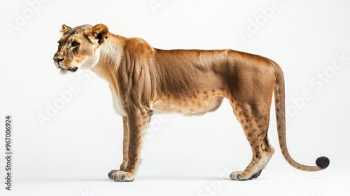 © Rere_Art151, Obraz premium A Lioness Standing on a White Background