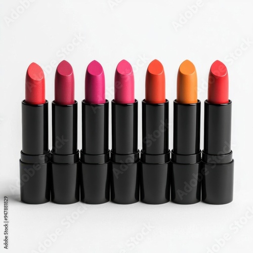 © Kunalai, Obraz premium a lipstick collection in gradient colors, makeup product, modern minimalist design, sleek packaging, isolated on white background