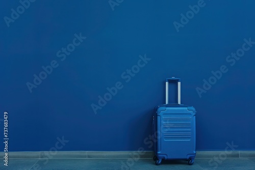 Obraz premium A liquid blue suitcase rests against an electric blue wall