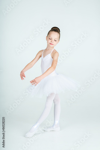 © jutaphoto, Naklejka premium A little adorable young ballerina poses on camera