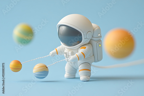 © Aksapix Studio, Naklejka premium A Little Astronaut's Planetary Playtime Exploring the Cosmos with Colorful Mini Planets