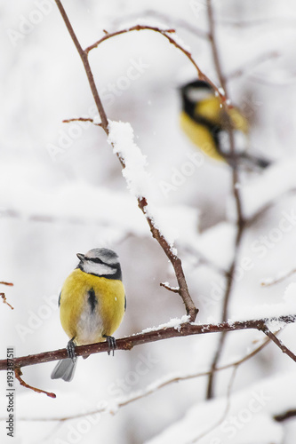 © ksubogdanova, Naklejka premium A little bird chickadee sitting on a branch of tree