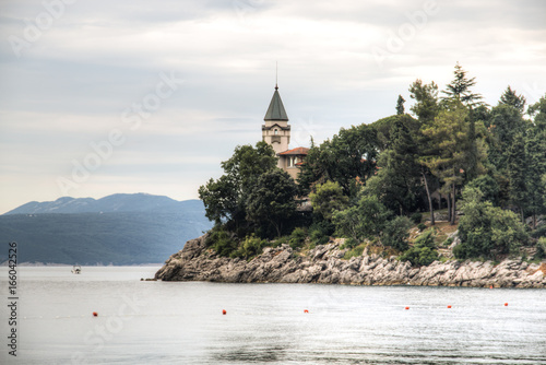 © waldorf27, Naklejka premium A little church next to the Adriatic sea in Lovran in Croatia