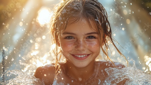 Obraz premium A little girl enjoys playing and splashing around in the water