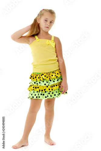 Fototapeta premium A little girl fixes her hair.